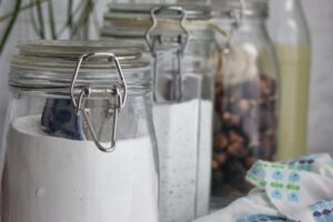 Auf Plastik komplett verzichten und dabei noch Geld sparen kannst du, wenn du dein Waschmittel selbst herstellst. Im Netz findest du auch viele Rezepte für Waschmittel aus Kastanien und Efeu, probier einfach aus, ob dir das Waschergebnis gefällt.