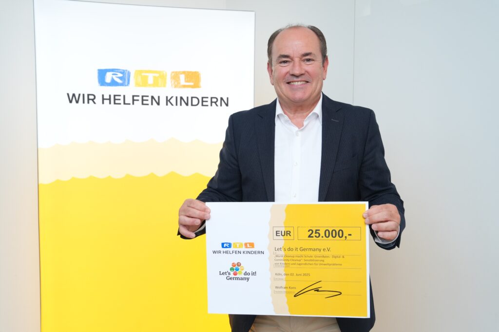 Am 2. Juni 2025 durften wir als Verein Let’s Do It Germany e. V. einen ganz besonderen Moment feiern: Im Rahmen der RTL-Stiftung „Wir helfen Kindern“ wurde unser Bildungsprogramm „World Cleanup macht Schule“ , konkret unsere Green Bytes Kampagne mit einer großzügigen Spende von 25.000 € gefördert.