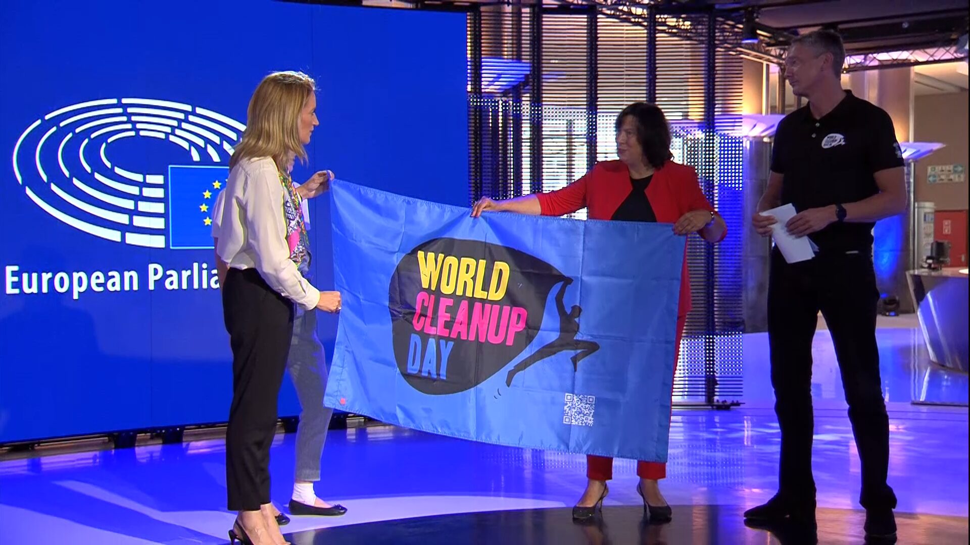 Kick Off World Cleanup Day im Europaparlament in Brüssel mit Roberta Metsola (EU Parlamentspräsident)